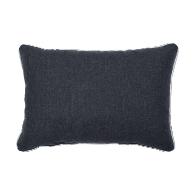 This decorative lumbar pillow combines the perfect blend of holiday charm and stylish sophistication to your festive decor. Entirely embroidered, the mix of the metallic yarns against the dark gray ground creates a subtle, yet noticeable balance across the pillow landscape. Additional features of this lumbar pillow include a metallic silver welt cord and recycled polyester fiber fill with a sewn seam closure.