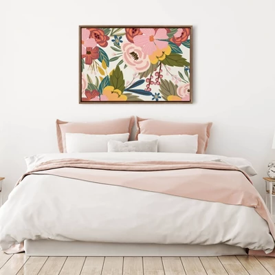 Add some vibrancy to your home with this vibrant floral accent piece by Mia Charro. Framed in the USA in Waunakee, Wisconsin, this floating canvas art will be a pleasure to look at every day in your living room, bedroom, nursery, or any room in the home. Printed on gallery-wrapped canvas and framed with a lightweight polystyrene frame, this wall art has two hangers already attached to the MDF back for easy wall display. The outer dimensions are 33 inches tall by 23 inches wide by 1.63 inches deep. Print Name: “Softly”