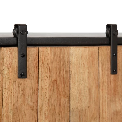 - INDUSTRIAL DESIGN: Indulge in your love of industrial aesthetics with the Samuels’ robust design, featuring a resilient, heavy-duty frame and a rolling barn door with a modern take on reclaimed shiplap