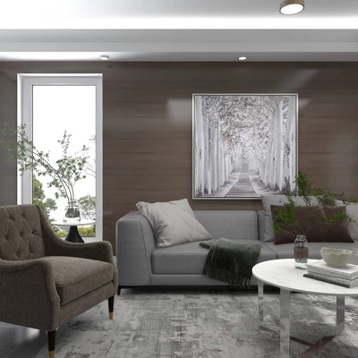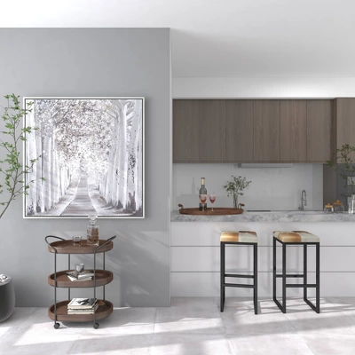Canvas Landscape Trees Framed Wall Art With Silver Frame White – Olivia & May