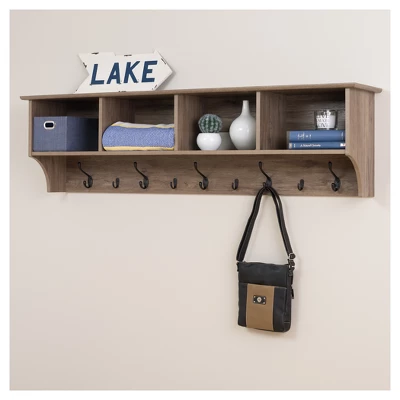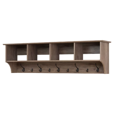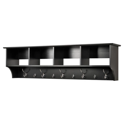 Ideal for an ever expanding household, the 60″ Wide Hanging Entryway Shelf will keep your entryway belongings together in one place! Suitable for any front hallway, foyer or mudroom, the four compartments provide ample storage for everyone in your family. Fill with baskets, gloves, mittens, hats and books. Five large and four small hooks provide plenty of places to hang jackets, coats, hoodies, sweaters, bags and purses. Installs easily with our innovative hanging rail system.