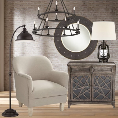- Industrial miner lantern table lamp. A great look for rustic or vintage farmhouse rooms. From the Franklin Iron Worksâ„¢ brand.