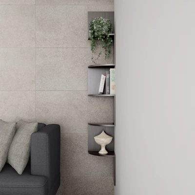 Create a decorative display without taking up too much space using this Hastings Home Floating Corner Shelf. Designed to fit vertically in a corner and requiring no floor support, this shelving unit features five tiers for a fun, contemporary style. Each shelf holds up to 5 pounds making this unit ideal for showcasing potted plants, framed photos, and collectibles.