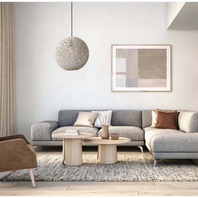 Perfect for a cozy styled living space, the Havana Large Pendant is an easy overhead lighting solution. Cream colored rattan strings form a sphere encasing a 60 Watt incandescent bulb or equivalent CFL. With a 15′ black fabric covered cord, equipped with an on/off rocker switch, you can easily hang this pendant wherever it is needed and plug in without the trouble of hardwiring.