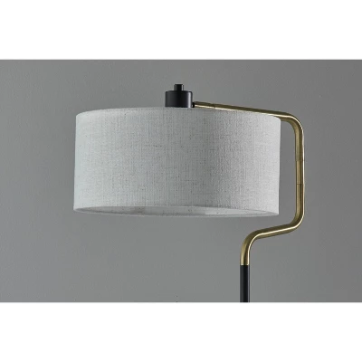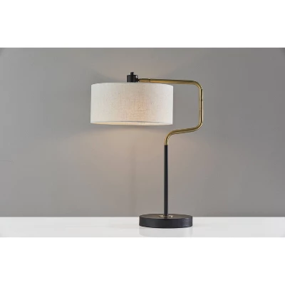 Clean lines and a modern, short drum shaped shade update the classic swing-arm style of the Jacob Table Lamp. A mix of black and brass metals add mid-century flare. The white fabric shade has soft flecks of natural colors, revealing a unique and beautiful texture when lit. Swing the arm to focus light where you desire. Bulb is not included.