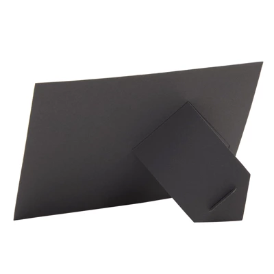 Don’t just keep memories in your heart; show them off! This set of 50 black paper photo frames with an attached stand makes it easy to proudly display favorite photos and artwork. With a paper frame size of 4×6 inches and a display window of 3.5 x 5 inches, these unique pieces let you create the perfect decor accent or gift that can be personalized through glitter, jewels, stickers, and other crafty embellishments. Get creative and start designing your unique gallery with our 4×6 cardboard picture frames.
