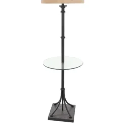 Tipton Farmhouse Iron Floor Lamp With Burlap Shade & Glass Table Bronze/Brown – StyleCraft