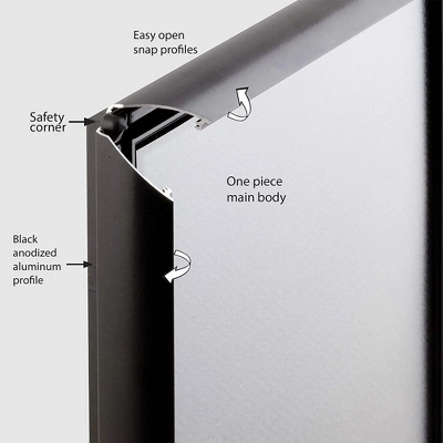 - DISPLAY FRAME: Front-loading frame with 1-inch profile easily displays advertisements, posters, or graphics vertically or horizontally; Quantity: 5