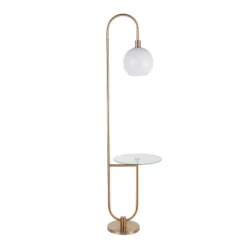 Trombone Contemporary/Glam Floor Lamp With Metal And Glass Shelf Gold (Includes LED Light Bulb) – LumiSource