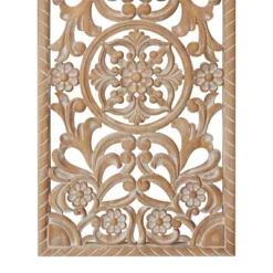 Wood Geometric Linear Carved Wall Decor With Suspended Frame Set Of 2 Brown – Olivia & May