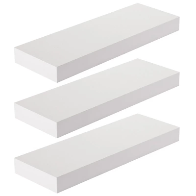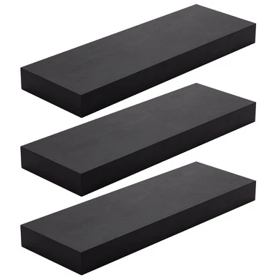 Style meets function while taking up zero SQUARE feet! Whether for framed photos, succulents, or home décor, the Sorbus Floating Shelf Set is the perfect platform for storage and display. It features a rectangular silhouette with a wood finish for rustic appeal. With a timeless look, this floating shelf fits most décor and can be installed virtually anywhere! Fill space above a desk, fireplace, entryway, between windows, and more. Hang with other styles from the Sorbus Floating Shelf Collection. Great for any living room, bathroom, hallway, and more. Take to the walls prized possessions into true conversation pieces! Hang this floating shelf in the laundry room for storage, in the living room over the fireplace, gallery style in a hallway, or to showcase collectibles in the home office. For a spa like retreat, use as a bathroom saver shelf to display small toiletries for overnight guests. Whether traditional or modern farmhouse, this shelf is suitable for any room around the home. Enjoy a sturdy design that is easy to install. Attaches firmly to wall with minor assembly required for hanging. Mounting hardware INCLUDED. Made of beautiful MDF with PVC + Bracket. Sturdy enough to arrange and display your favorite small objects Supports up to 8 pounds per shelf. Measures approximately 16. 25 inches L x 5. 50 inches W (Each shelf 1. 5 inches thick).