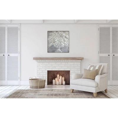 The embossed metal on this wall décor is beautiful. The textured flowers with white and gray coloration will be amazing on your wall. Place it alone or with other decorative items.
