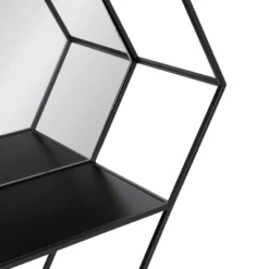 28″ X 24″ Lintz Hexagon Decorative Wall Mirror Shelf Black – Kate & Laurel All Things Decor